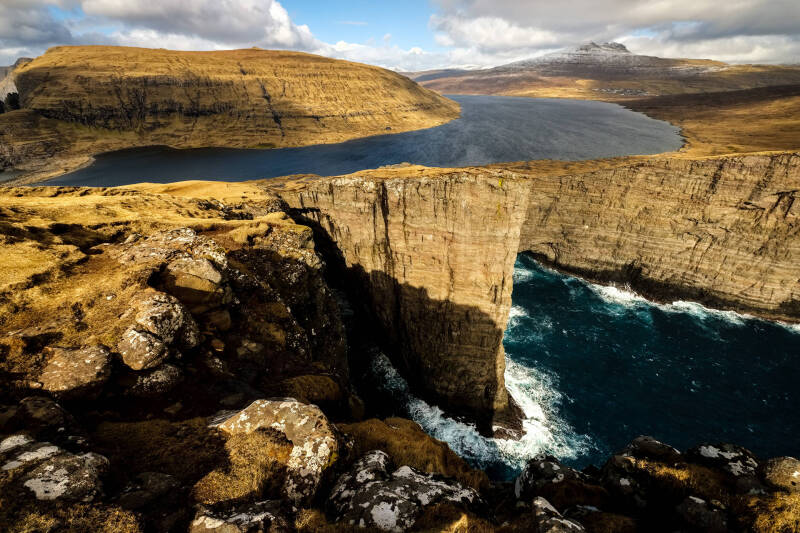 HU: Feröer-szigetek fotózás, északi tájfotózás, Atlanti-óceán partvidék, meredek sziklafalak, vízesések, fjordok, eldugott falvak, északi hangulat, színes faházak, zord táj, vad természeti környezet, művészi tájkép