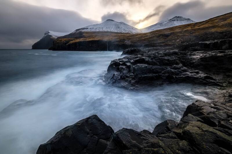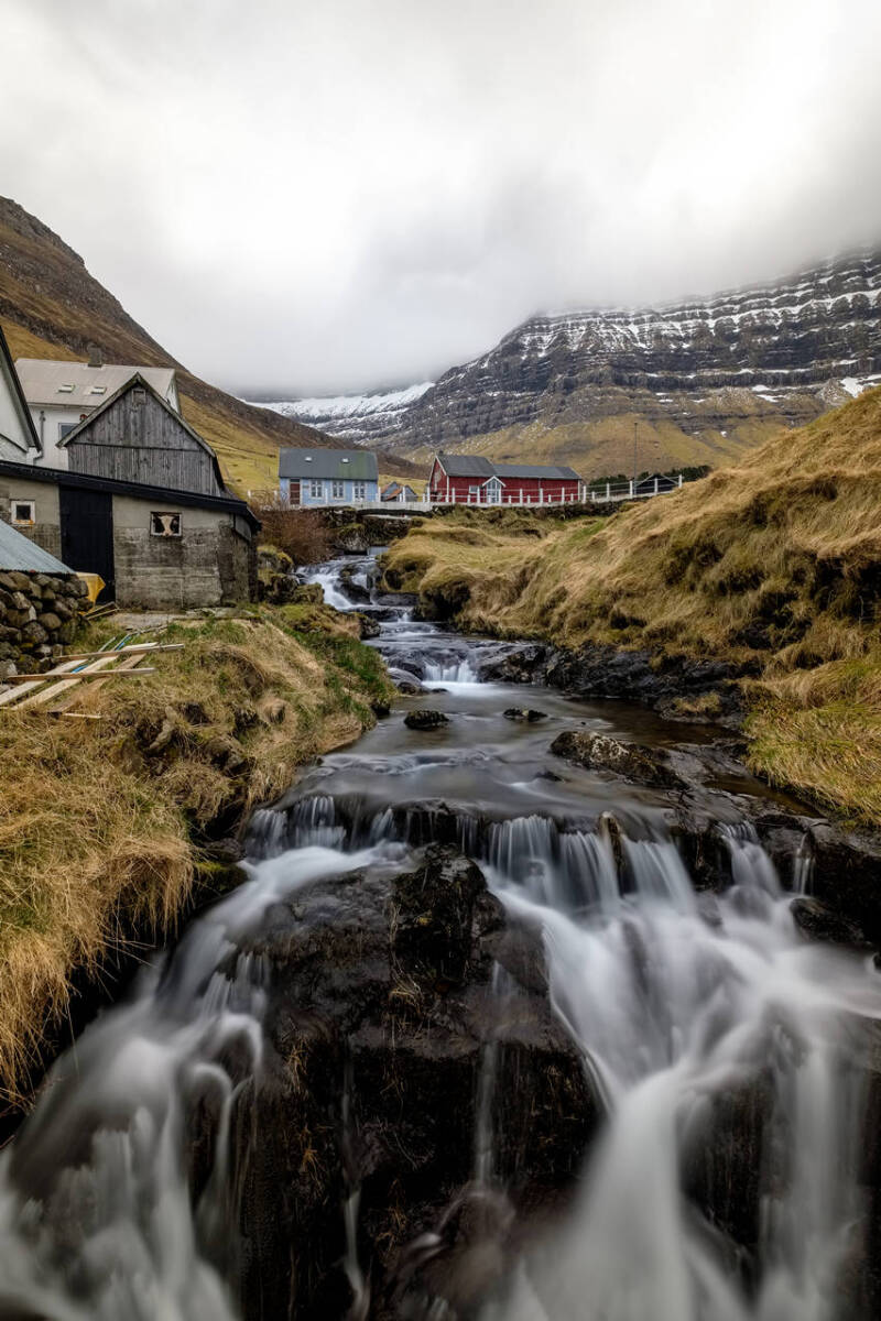 The Faroe Islands are a land shaped by wind, ocean and isolation. Stark, pleated mountains rise directly from the sea, their bare slopes covered only by grasslands used as sheep pastures, forming one of the most distinctive landscapes of the North Atlantic. Waves of Atlantic moisture often drift in from the ocean, flowing through the fjords as light fades quickly and the weather shifts within moments. This ever-changing atmosphere defines the northern character of the islands. Scattered along fjords and hillsides, small, colorful wooden houses introduce warmth and human presence into the raw scenery — a quietly uplifting contrast against the surrounding wilderness and long northern darkness. This gallery follows my visual journey across the Faroe Islands, capturing dramatic cliffs, cascading waterfalls, winding fjords and remote villages where nature and fragile human life exist in a constant, delicate balance.