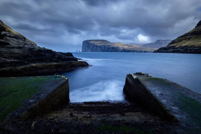 EN: Faroe Islands photography, North Atlantic landscape, dramatic cliffs, pleated mountains, Atlantic mist, waterfalls Faroe Islands, fjords, remote villages, northern atmosphere, colorful wooden houses, rugged coastline, isolation landscape photography, Nordic scenery, moody weather photography, fine art landscape, Vágar, Streymoy, Eysturoy, Borðoy, Viðoy, Møllafossur waterfall, Bøsdalafossur, Trælanípan cliffs, Trollkonufingur rock, Saksun village, Tjørnuvík coast, Risin og Kellingin sea stacks, Fossá waterfall, Eiði coastline, Gjógv village, Slættaratindur mountain, Funningsfjørður fjord, Klaksvík viewpoints