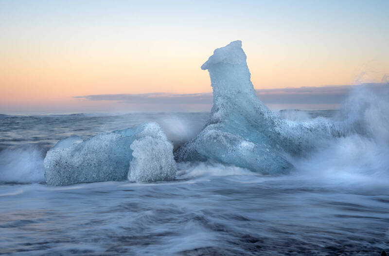 Iceland is a land born of volcanoes and lava, where raw geological forces shape every horizon. Basalt columns rise beside waterfalls, Atlantic waves carve black sand beaches, and rugged cliffs meet a restless ocean. Vast lava fields stretch across the land, softened by thick moss, while colorful nordic houses, minimalist, isolated churches and adorable, calm Icelandic horses bring quiet human presence into the elemental landscape. At the same time, Iceland is defined by contrast: active volcanic power set against slowly moving glaciers. From eruptive geysers to ancient ice drifting toward the sea, this tension gives rise to places like Diamond Beach, where glacial ice becomes fleeting sculptural forms. Under its dark northern skies, Iceland is also one of the world’s most exceptional locations for photographing the Aurora Borealis, adding a celestial dimension to a land already shaped by extremes.