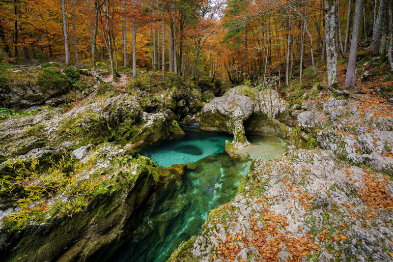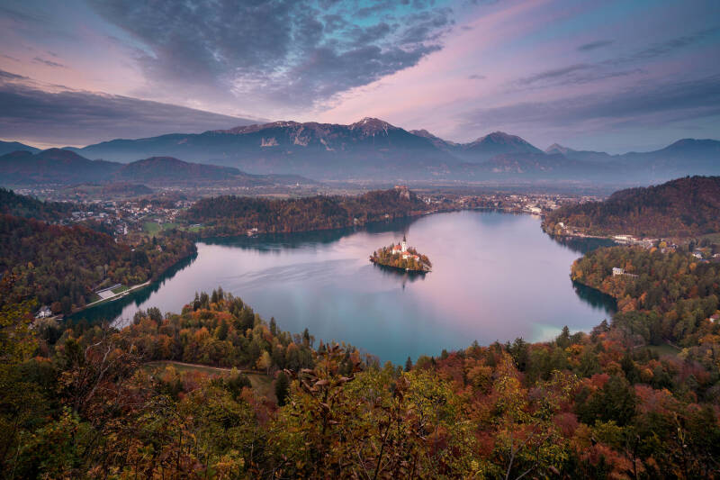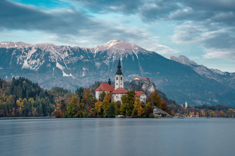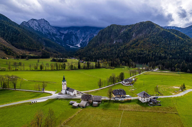 EN: Julian Alps photography, Slovenia landscape photography, Bled Island, Visevnik, Mangart, Vršič Pass, Soča Valley, Soča Canyon, Tolmin Gorge, Mostnica Gorge, Zelenci springs, Peričnik Waterfall, Boka Waterfall, Virje Waterfall, Slap Rinka, alpine waterfalls, turquoise alpine waters, crystal clear springs, fragile ecosystems, autumn mountain colors, grazing sheep, drone mountain photography, aerial landscape photography, Katoliška cerkev Svetega Primoža in Felicijana, fine art alpine landscapes