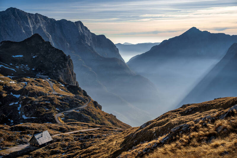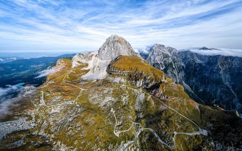 The Julian Alps of Slovenia offer an exceptional diversity of landscapes within a compact mountain region. From turquoise alpine springs and deep gorges to high ridges, waterfalls and peaceful mountain pastures, this gallery captures the area across changing light and seasons. Photographed both from the ground and from the air, the images include misty valleys, grazing sheep on alpine meadows, vivid autumn colors, and iconic locations such as Zelenci, Bled Island, Vršič Pass, Mangart and the Soča Valley.