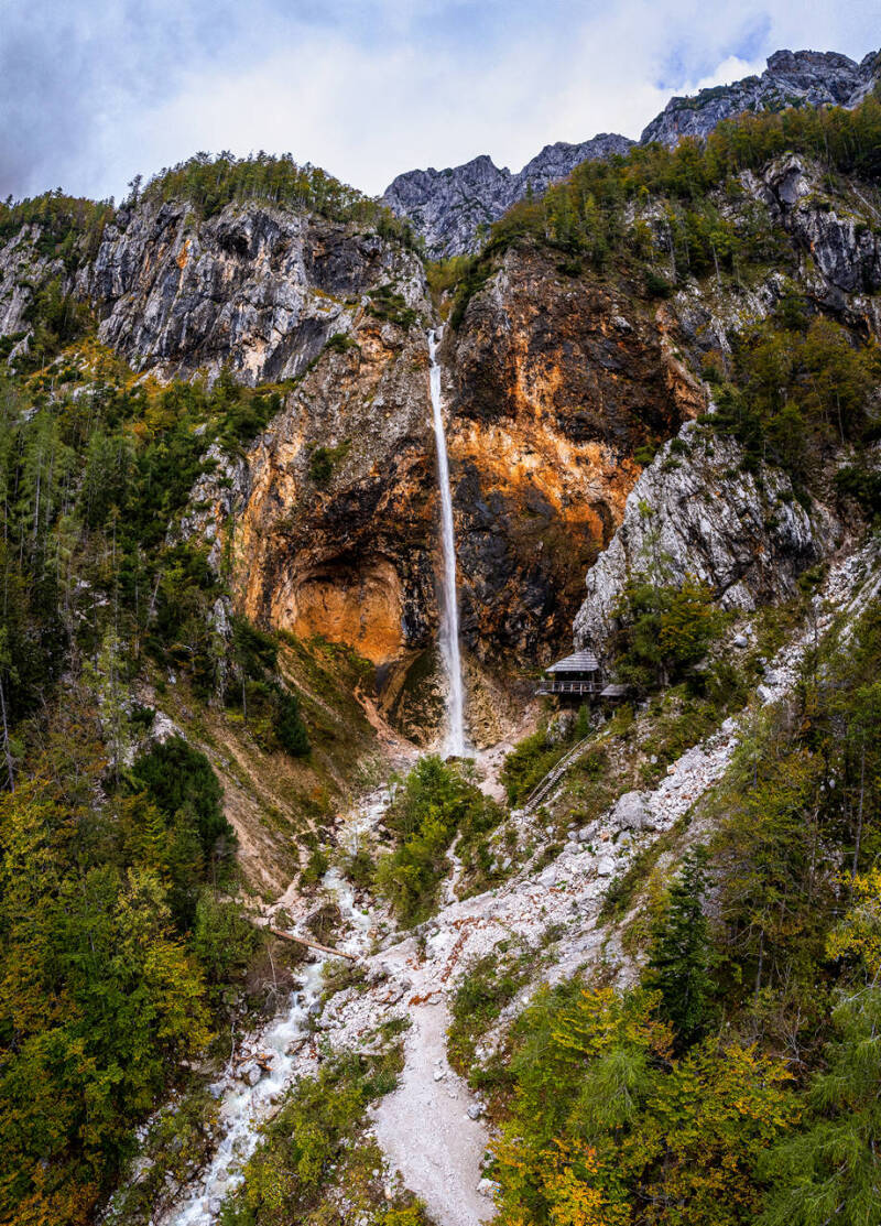 HU: Júliai-Alpok fotózás, Szlovénia tájkép fotózás, alpesi vízesések, türkizkék hegyi vizek, kristálytiszta források, törékeny természeti környezet, őszi hegyi színek, alpesi legelők, legelő birkák, drón tájfotózás, légi tájkép fotózás